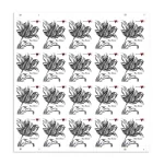 Jeanne Greco designed the Vintage Tulip stamp using drawings from engraved plates made by Maria Sibylla Merian (1647-1717), a naturalist artist.? Greco added a small, dark red heart for a touch of color.? This stamp was printed using engraving, unlike most modern stamps that are lithographed.