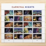 Experience the thrills ofCarnival Nightswith this colorful pane of stamps in 2024.