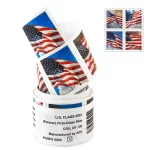 The Postal Service continues its tradition of celebrating the U.S. flag with these stamps in booklets of 20, and coils of 100, 3,000, and 10,000.