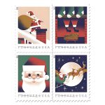 In 2021, the United States Postal Service issued a set of four Forever Stamps picturing different scenes from the classic Christmas poem “A Visit From St. Nicholas.” ?The set was even named after the poem, though shortened slightly to A Visit From St. Nick. ?The Stamps picture St. Nicholas on a roof about to go down a chimney, a fireplace with stockings, St. Nicholas winking, and a view of him flying across the sky in his sleigh.