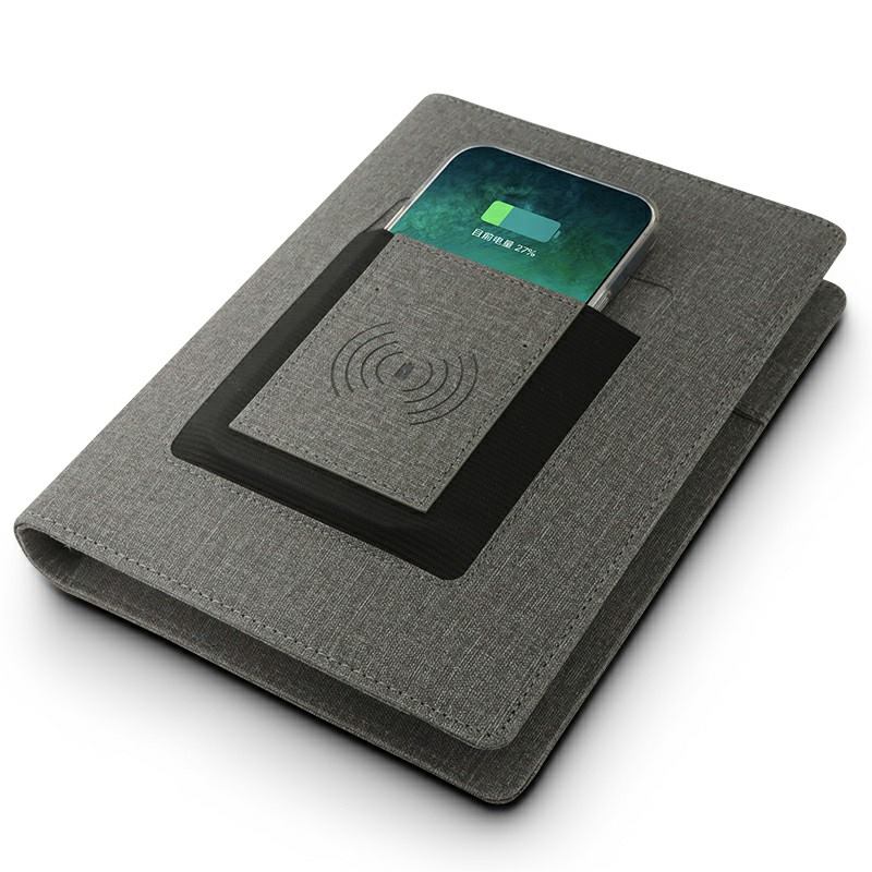 A5 PU Leather Journal Planner Notebook Customizable MP4 Video Player Wireless Charging Business Notebook with Pockets and USB