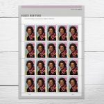 The 47th stamp in the Black Heritage series depicts a portrait of Motley by Charly Palmer rendered in acrylic on canvas. The stenciled