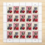 Design: The stamp features a kitten with its paws on a red heart against a yellow background. The design is derived from an oil painting on wood panel by Chris Buzelli, digitally edited for the stamp.