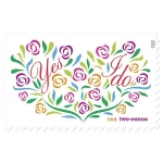 The stamp design highlights the words, ??Yes, I Do?? nestled in a bouquet of flowers in the shape of a heart on a white background. A similarly designed companion stamp, Where Dreams Blossom, issued in 2013, is available for response cards, save-the-date notices, thank-you notes, and other correspondence. The Yes, I Do stamp artwork was designed by Michael Osborne under the direction of Ethel Kessler.The words ??two ounce?? on this stamp indicate its usage value. Like a Forever stamp, this stamp will always be valid for the rate printed on it. The initial price and value for this stamp is 71 cents.